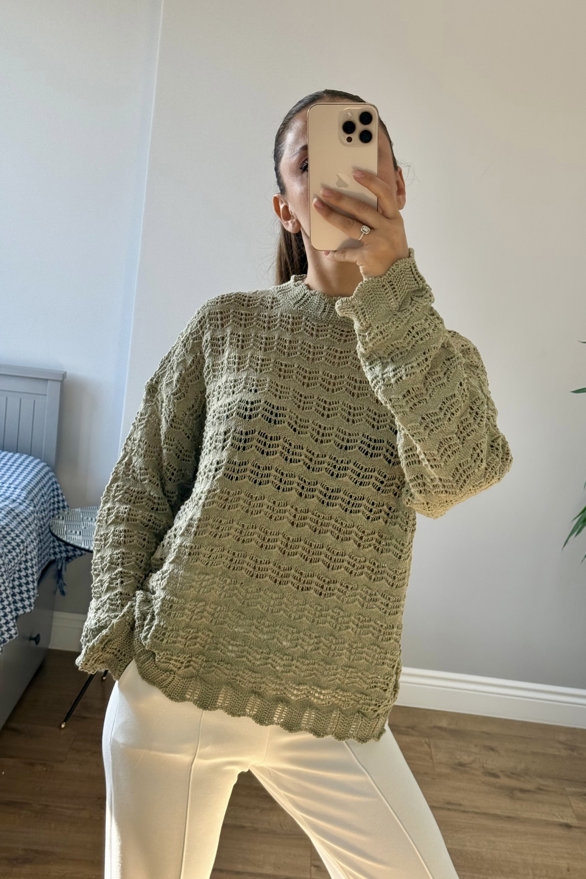 Şıklığı ve rahatlığı bir arada sunan ajurlu triko, nefes alabilen yapısıyla her mevsime uyum sağlar. Özel ajurlu örgü dokusu, hem feminen hem de modern bir görünüm sunar. Oversize kalıbı sayesinde rahat bir kullanım sağlarken, yumuşak dokusu ile gün boyu konfor sunar.