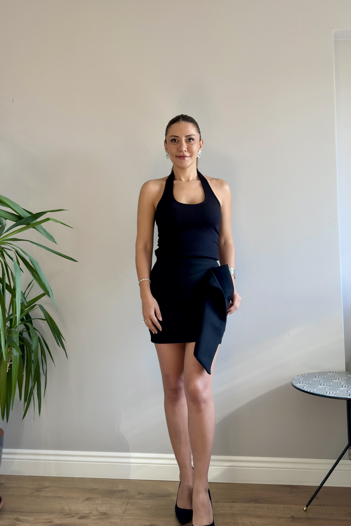 Modern ve şık bir görünüm sunan drape detaylı mini etek, feminen kesimiyle davetlerden akşam yemeklerine kadar birçok kombinde kullanılabilecek özel bir parçadır. Yan kısmındaki drape detayı eteğe hareket katarken, mini boy ölçüsü özgüvenli ve zarif bir stil sağlar.