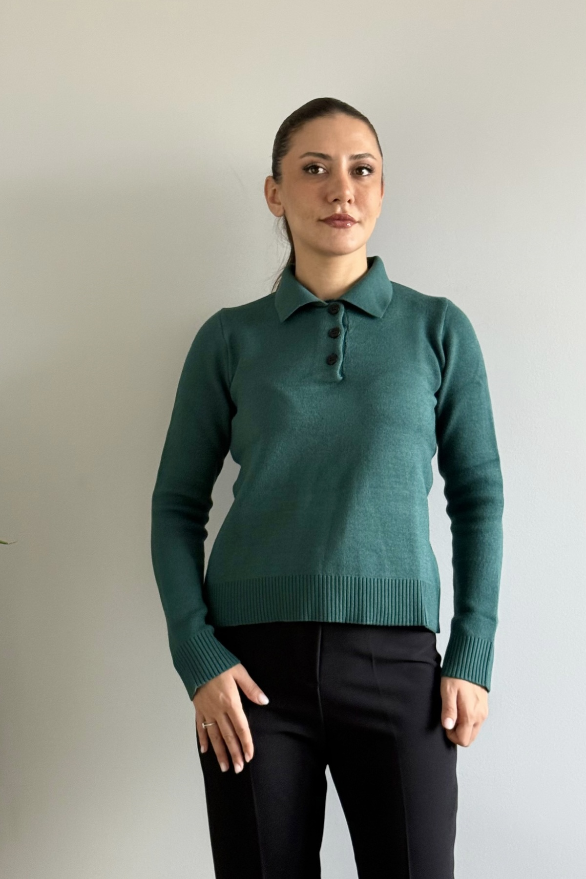 polo yaka düğmeli kazak,